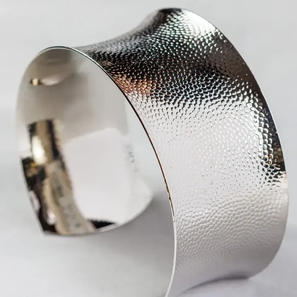 Este bracelete largo com acabamento texturizado é uma peça imponente e cheia de personalidade. Seu design moderno e elegante, banhado em ródio branco, destaca-se pela textura única que cria um jogo de luz e sombra, proporcionando um visual sofisticado e contemporâneo. Perfeito para ser usado tanto em looks casuais quanto em eventos especiais, ele é ideal para quem deseja adicionar um toque de classe e estilo a qualquer composição.