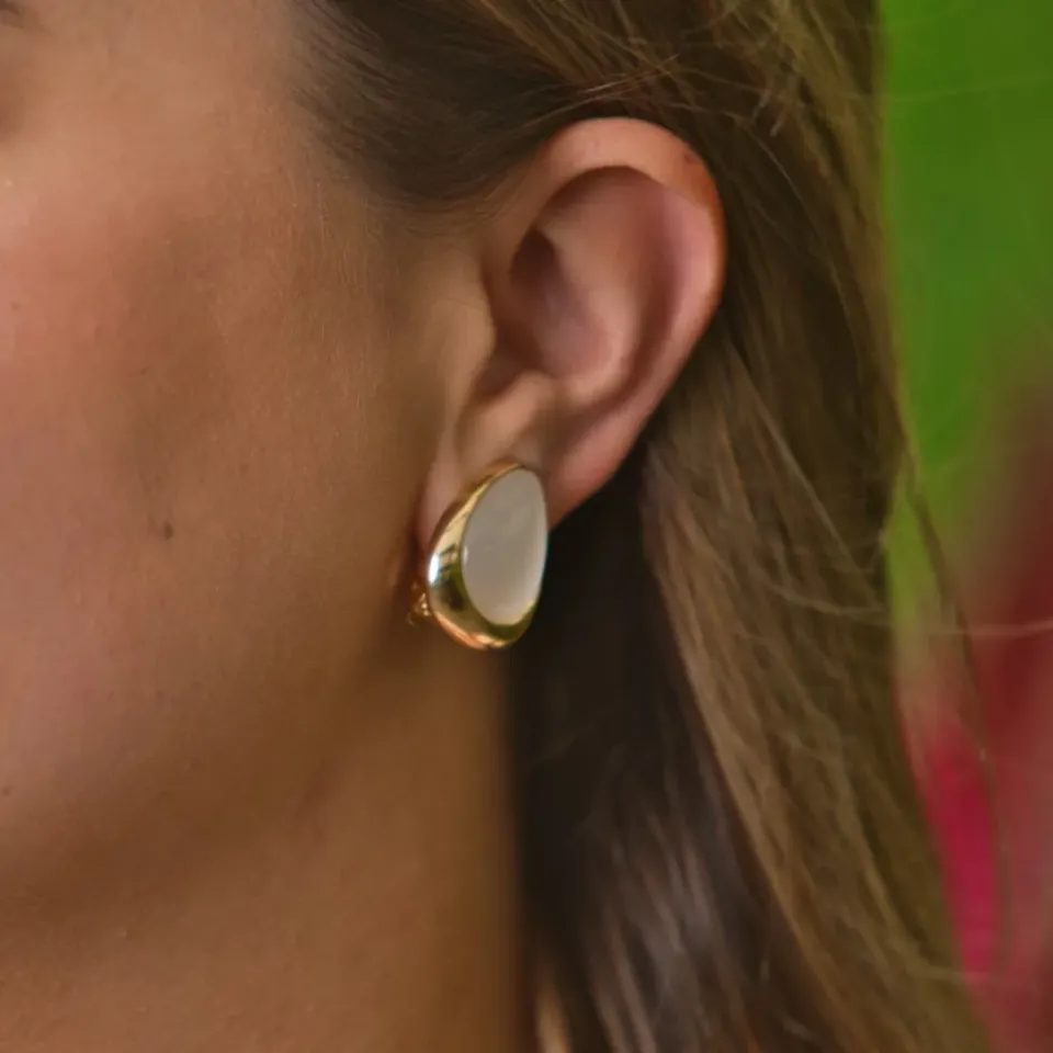 Brinco de Pressão no Formato de Gota com Pedra Olho de Gato – Elegância e Sofisticação