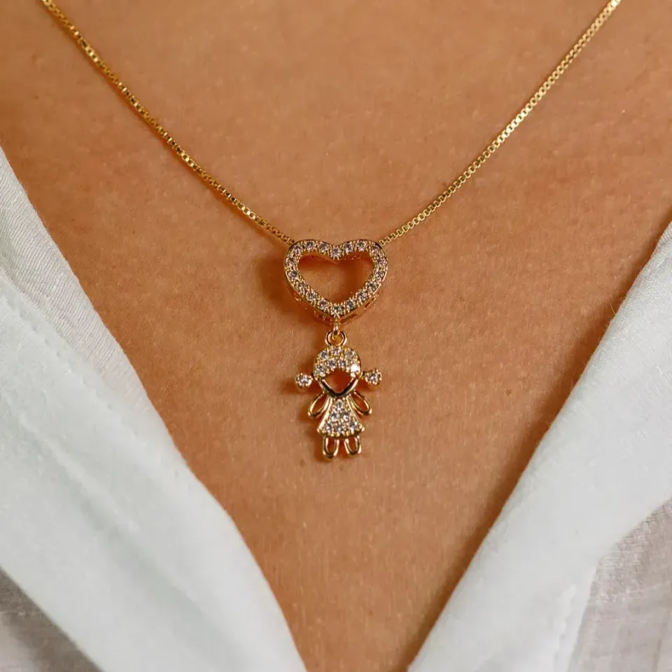 Colar Coração Cravejado e MeninaConfira opiniões e avaliações de clientes!