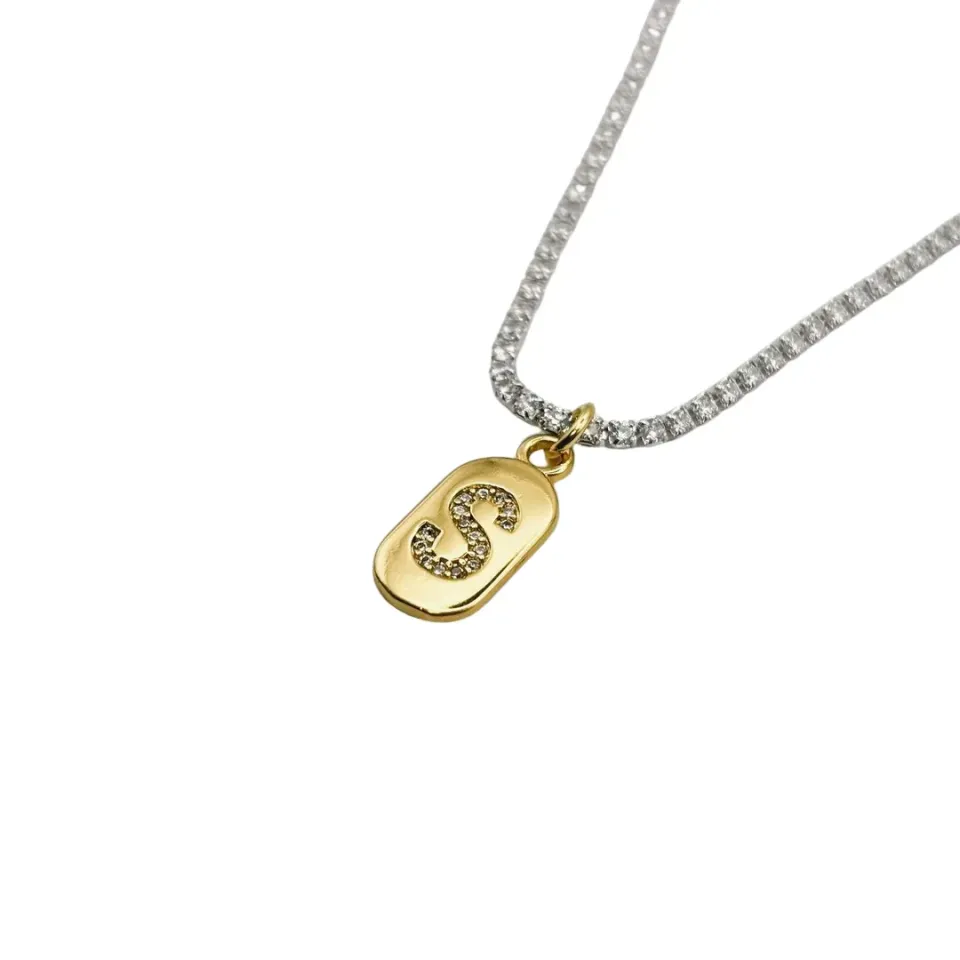 - Colar Riviera com plaquinha cravejada em zircônia com duo de letras "S".