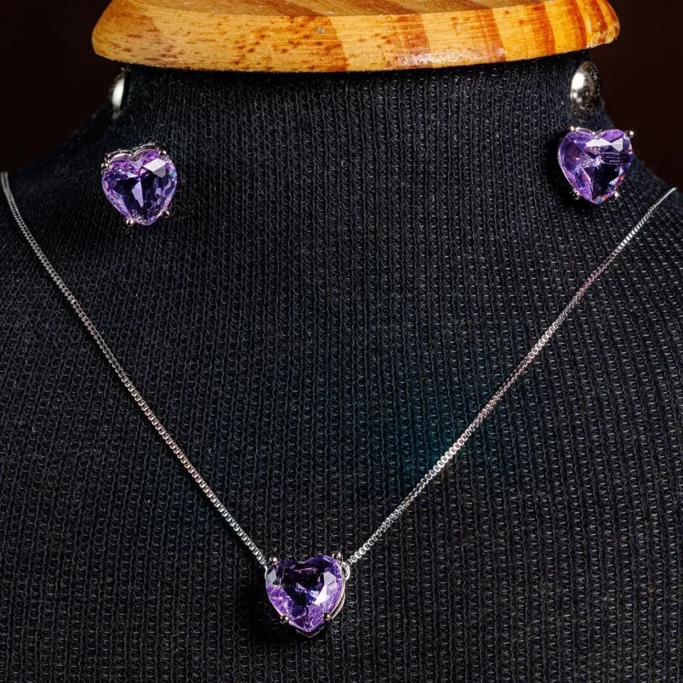 CONJUNTO CORACAO CRAVEJADO AMETISTAConfira opiniões e avaliações de clientes!