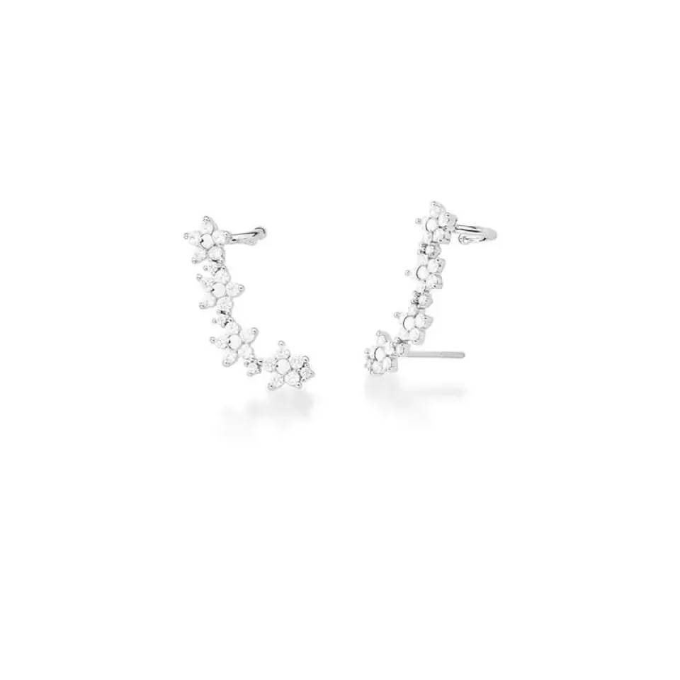 Brinco Earcuff Flores Cravejado em Zircônia – Encanto e Delicadeza