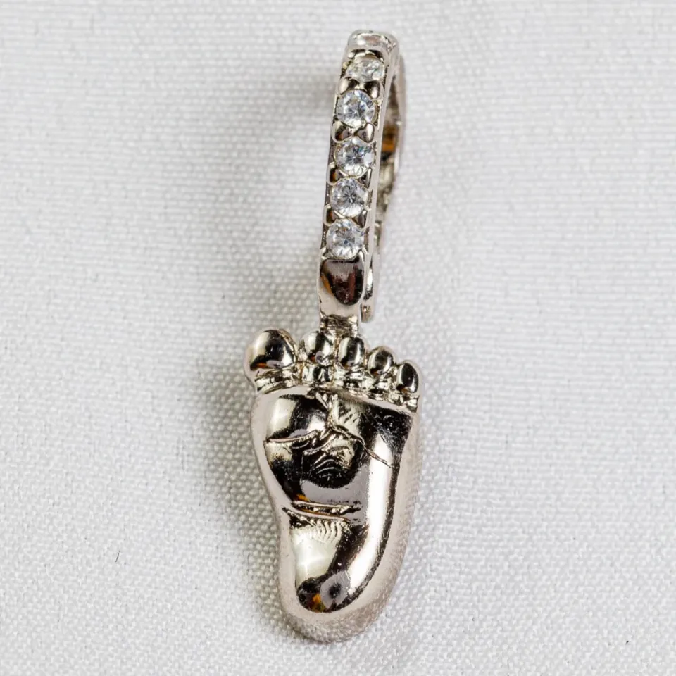 Este delicado pingente traz o formato de um pé liso em ródio branco, ideal para quem busca um acessório simbólico com um toque de brilho discreto. A contra argola, cravejada em zircônias cristal, adiciona um acabamento refinado e elegante ao design. Perfeito para complementar um look casual ou para presentear alguém especial com um toque de carinho e significado.